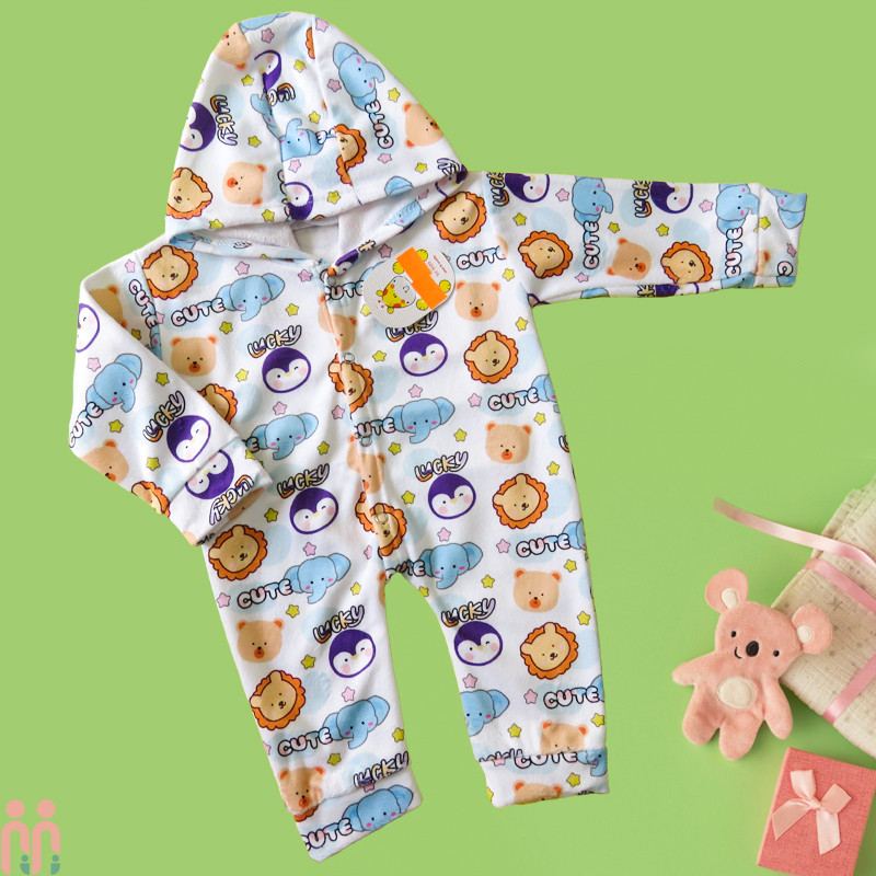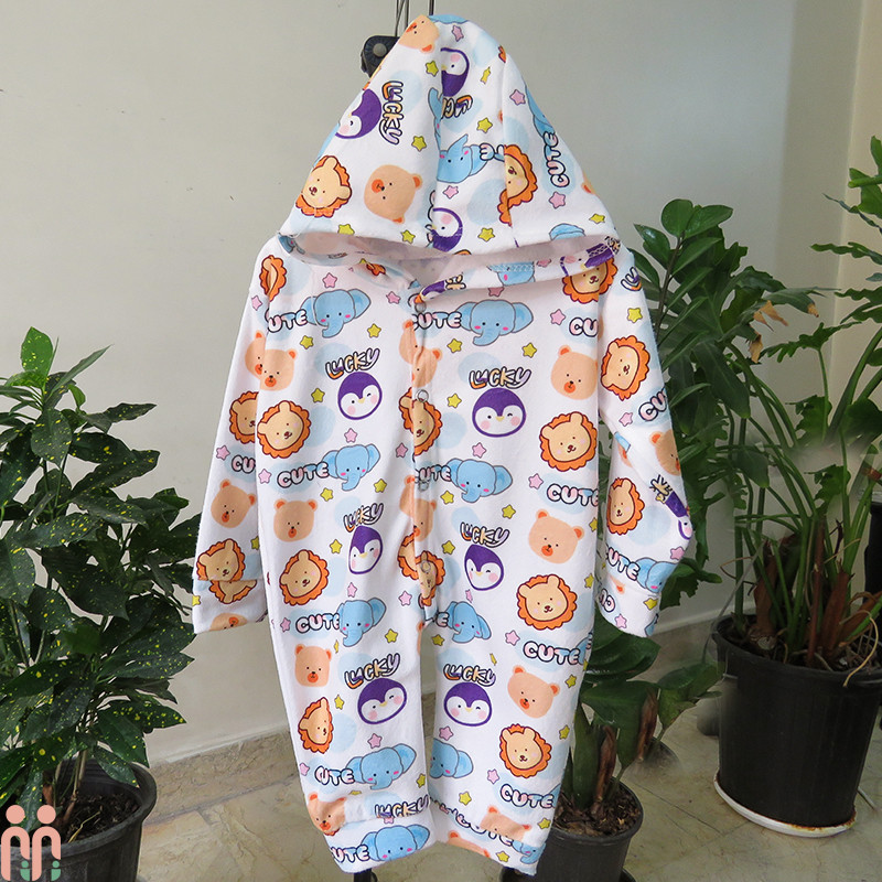 سرهمی کلاهدار مخمل دورو نوزاد و کودک سفید پنگوئن baby new fleece jumpsuits