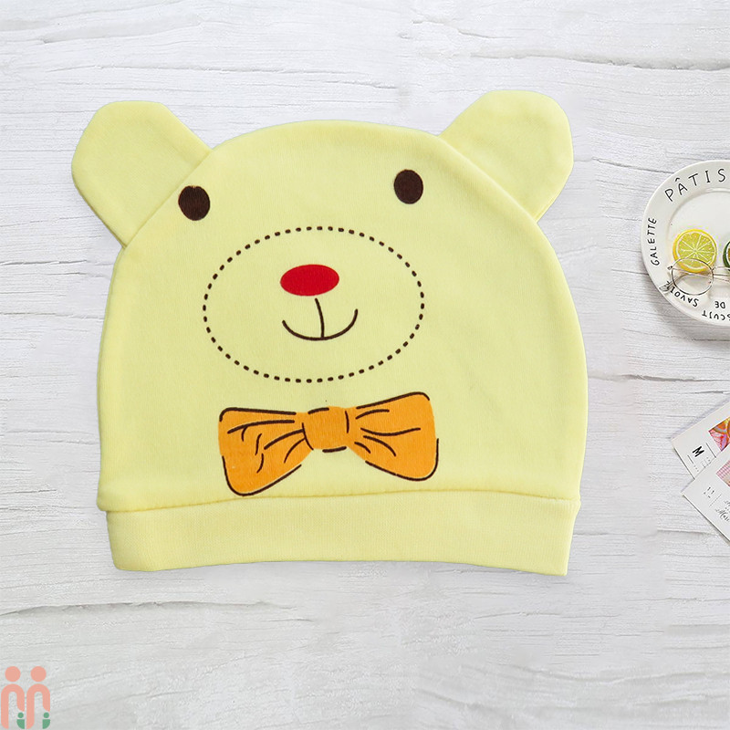 کلاه نوزاد کشی پنبه ای وارداتی لیمویی خرس کارتونی Newborn cotton hat
