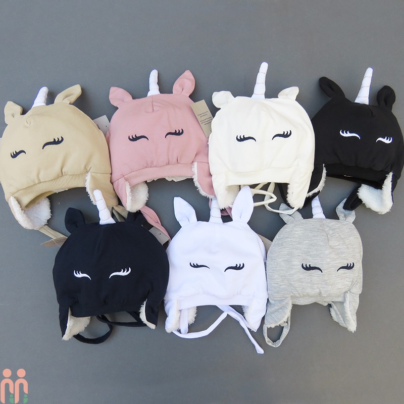 کلاه بچه گانه نوزاد 2 لایه می باشد، روی کلاه دخترانه پسرانه یونی کورن پارچه ای و داخل کلاه خزدار نرم و گرم می باشد