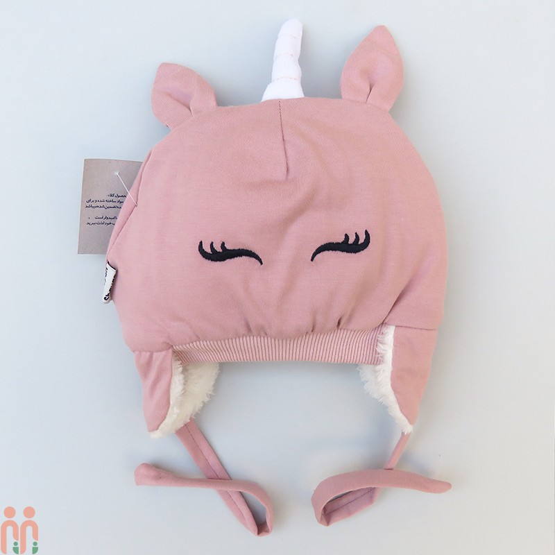 کلاه دخترانه نوزاد روگوشی گرم داخل خزدار یونی کورن صورتی Baby warm unicorn hats
