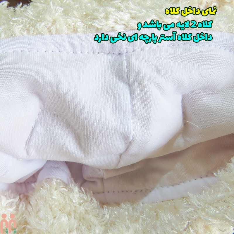 کلاه گرم خز پولیشی تدی نوزاد و بچگانه 2 لایه و دارای آستر پارچه ای و همچنین دو بند نرم می باشد و بخوبی روی گوشها و پیشانی و سر را می پوشاند
