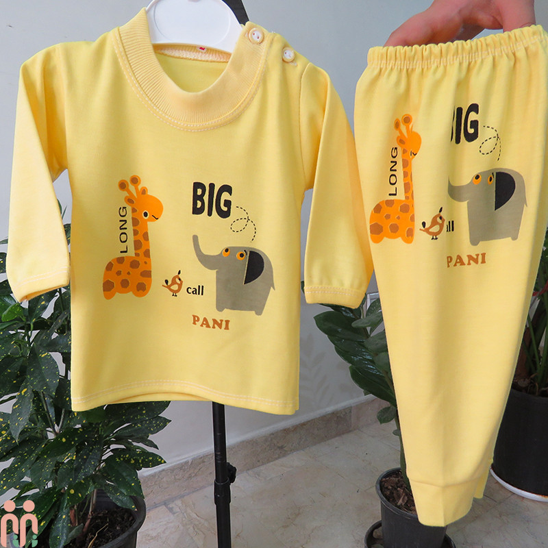 لباس بلوز شلوار نوزاد و کودک نخی زرافه و فیل Baby clothes set