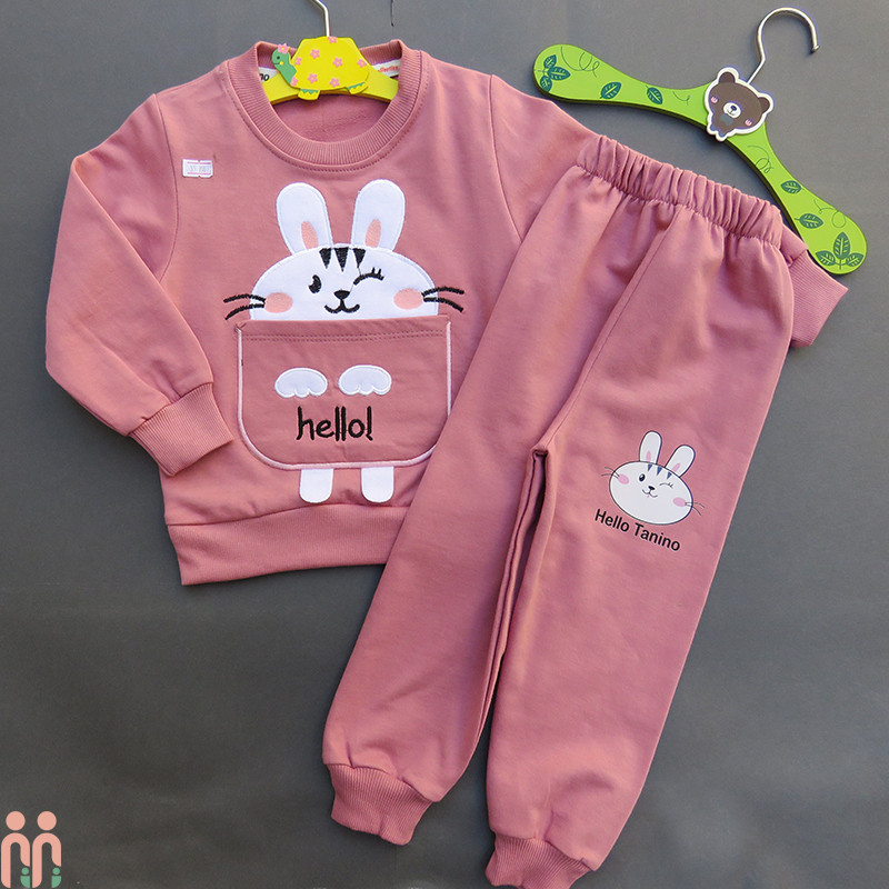 بلوز و شلوار دورس دخترانه 3 تا 4 سال خرگوش صورتی کالباسی Rabbit set clothes