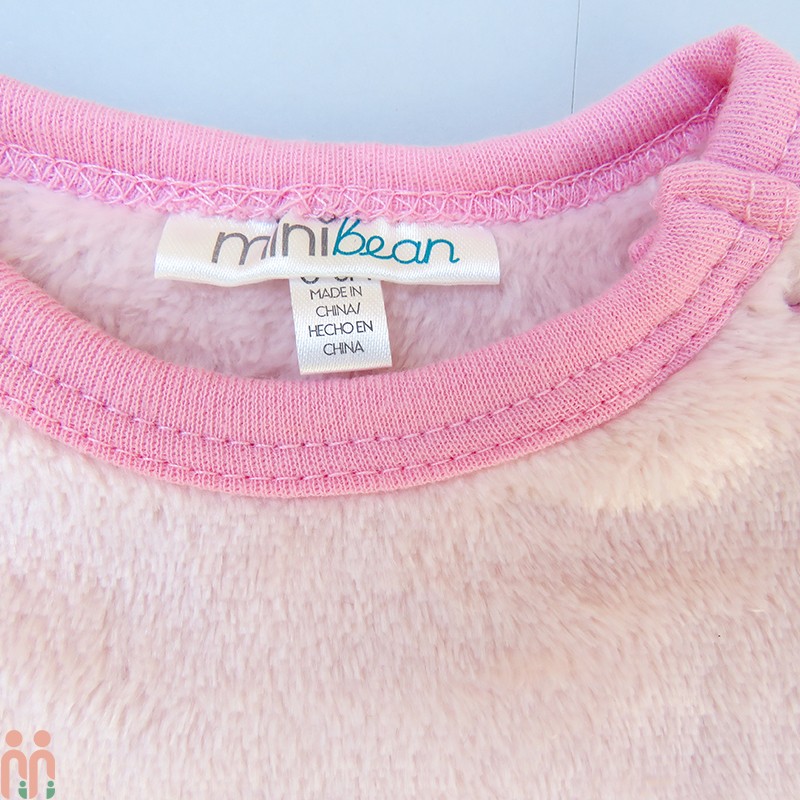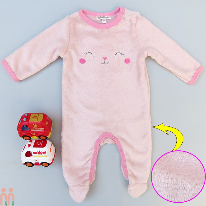 لباس سرهمی دخترانه نوزاد گرم مخملی زمستانی وارداتی صورتی گربه برند مینی بین 0 تا 6 ماه mini bean baby fleece pajamas