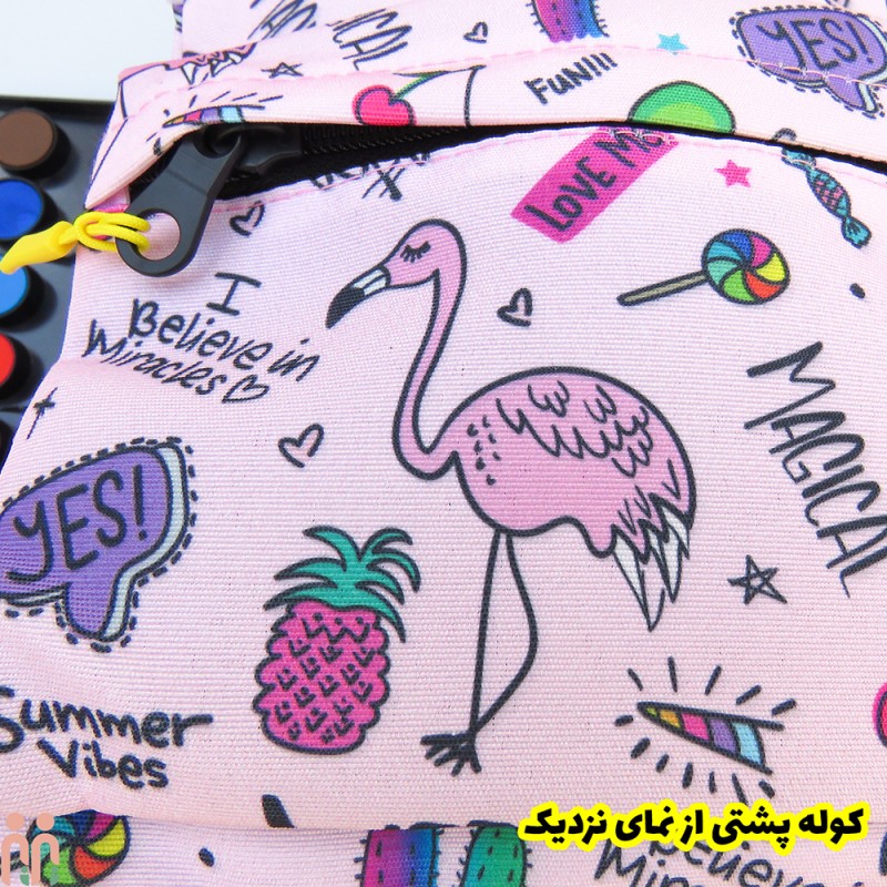 کوله پشتی بچه گانه مهد و پیش دبستانی برزنتی صورتی فلامینگو kids preschool backpack