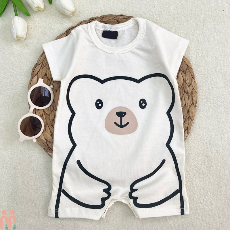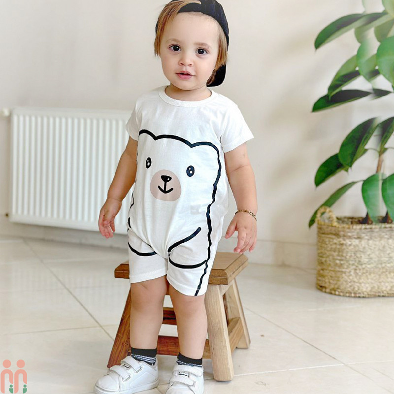رامپر نخی نوزاد و بچه گانه خرس مهربون شیری Baby cotton rompers