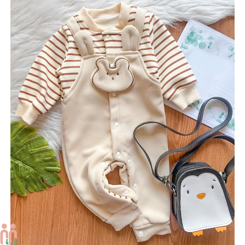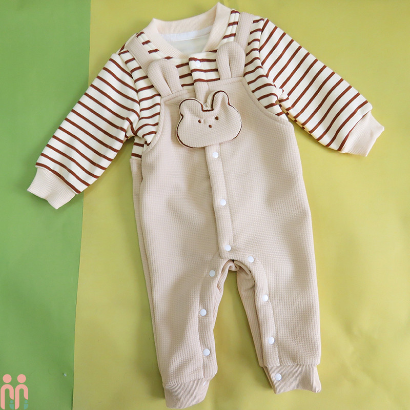 سرهمی داخل خز نوزاد و کودک وارداتی اورجینال کرم نسکافه ای خرگوش baby warm cute jumpsuits