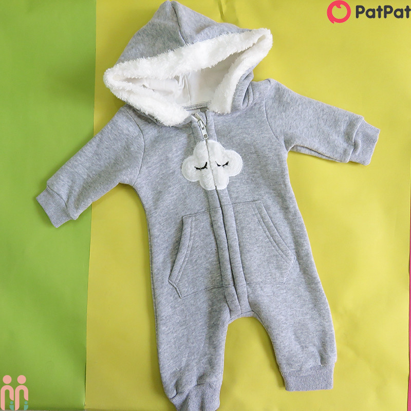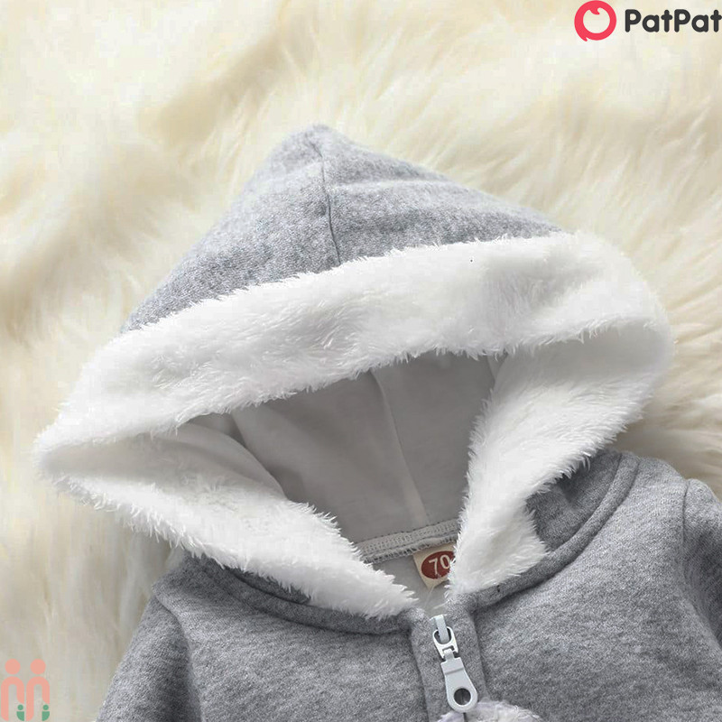 سرهمی گرم کلاهدار نوزاد و کودک توکُرکی وارداتی طوسی ابر مارک اورجینال پت پت pat pat baby jumpsuits